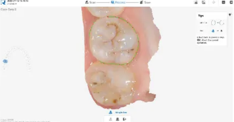 “Margin Line” įrankis gali padėti odontologams nubrėžti nuskaitomų duomenų paraštės liniją ir eksportuoti ją į patentuotą formatą. Pažymėtos ribinės linijos duomenis galima importuoti į projektavimo programinę įrangą, tokią kaip EXOCAD.