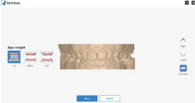„Add Base“ įrankis gali padėti odontologams sukurti modelio failus, kuriuos galima tiesiogiai naudoti spausdinant, vienu paspaudimu.